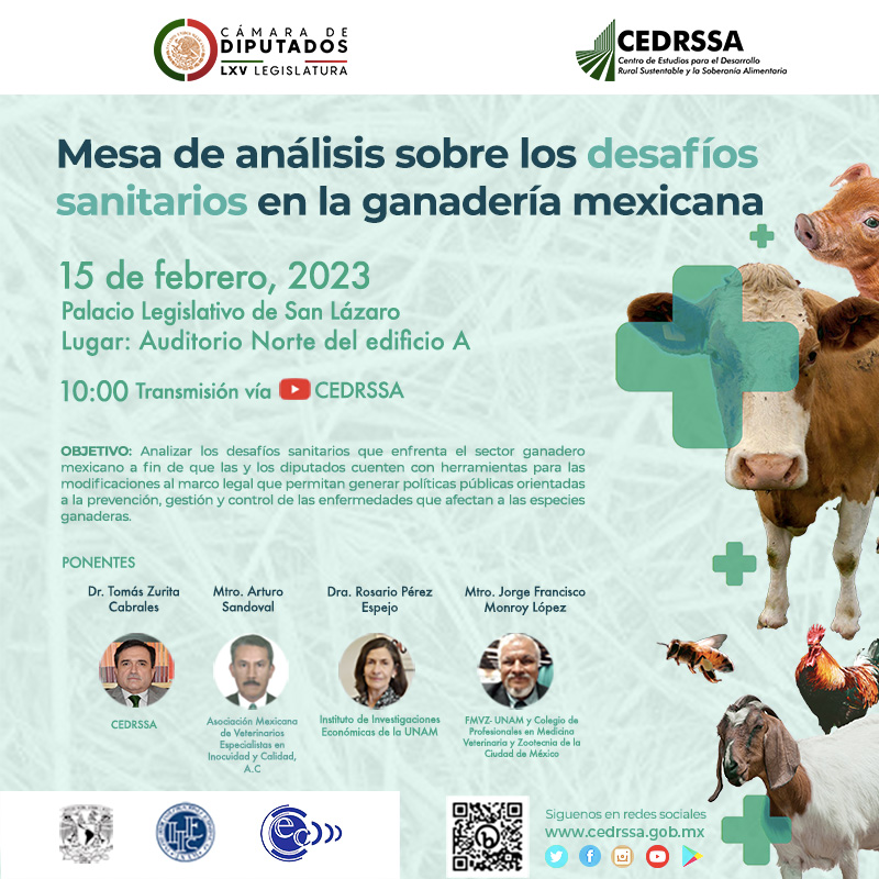 Objetivo: analizar los desafíos sanitarios que enfrenta el sector ganadero mexicano a fin de que las y los diputados cuenten con herramientas para proponer modificaciones al marco legal que permitan generar políticas públicas orientadas a la prevención, gestión y control de las enfermedades que afectan a las especies ganaderas.